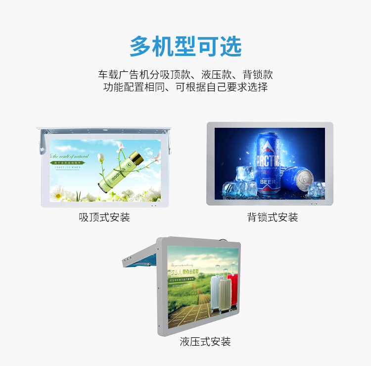 中煜視通是15.6寸車載廣告機生產廠家,我們提供吸頂車載廣告機、背掛車載廣告機、折疊式車載廣告機多種安裝方式,滿足各種車型,內置抗振設計,減少車載環境內震動對機器本身的影響,能讓機器在特殊情況中穩定運行。