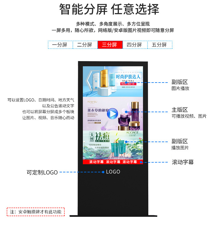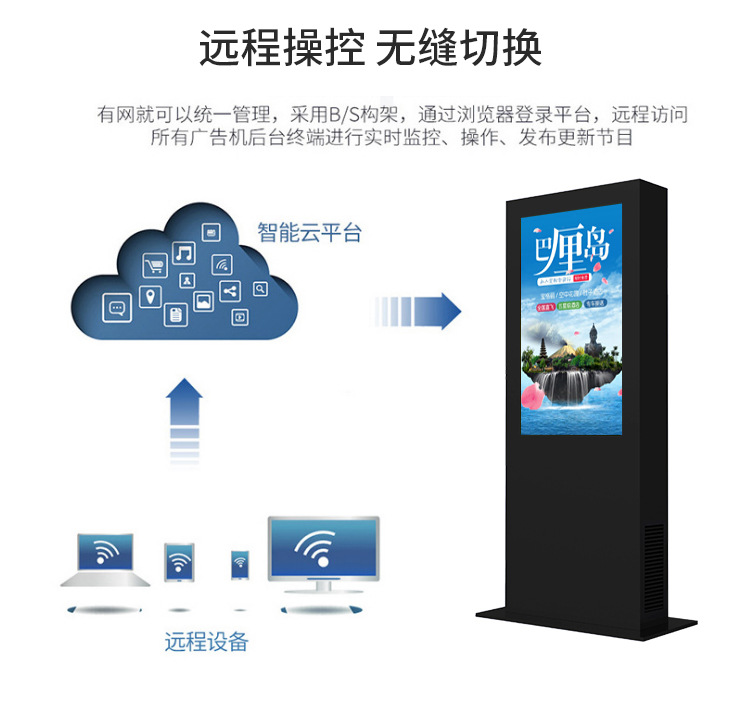 戶外壁掛式廣告機適用于旅游景區、公園、廣告傳媒、社區、公交站臺、高速收費站、政府機關、校園等戶外場合使用,我們的戶外廣告機支持定制外觀、硬件、接口等,廠家直銷,價格優惠,歡迎來電咨詢:18566661105